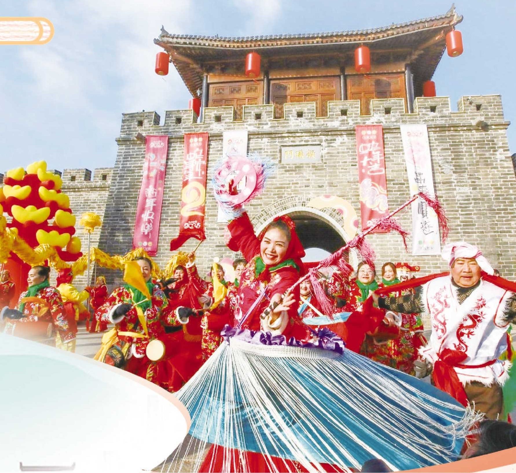 民间艺人在淮北市濉溪古城进行踩街表演 张红心 摄