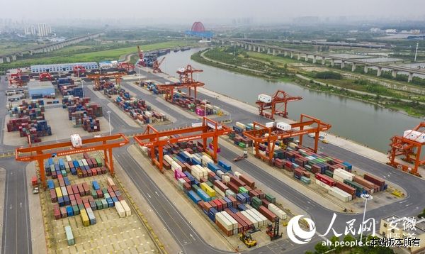 安徽省港航集团旗下的合肥港国际集装箱码头。人民网 张俊摄
