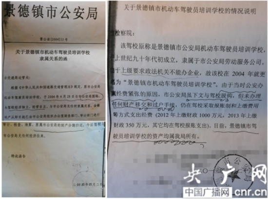 而在黄氏父女被拘留之前一个月,也就是2013年3月26号,景德镇市公安局向市检察院出具了一份情况说明,其中写道:“由于上级要求政法机关不能办企业,当时公安办案经费紧张的原因,市公安局虽下文与驾校脱钩,但未办理任何财产移交和过户手续,仍在驾校采取报账制和上缴费用等方式支出经费(除2012年上缴财政1000万,2013年上缴财政350万元之外,其它均在驾校报账支出)。目前该驾校的资产,均属我局所有。”