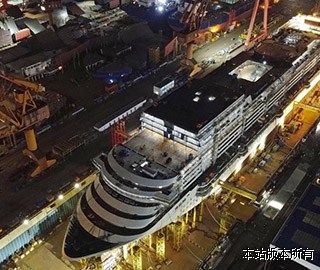 华徽网消息      9月7日晚,航拍正在建造中的中国首制大型邮轮。近日,从中国船舶集团旗下上海外高桥造船有限公司了解到,本月首制大型邮轮主船体贯通工作将进入收尾阶段。(无人机照片) 中新社记者 殷立勤 摄