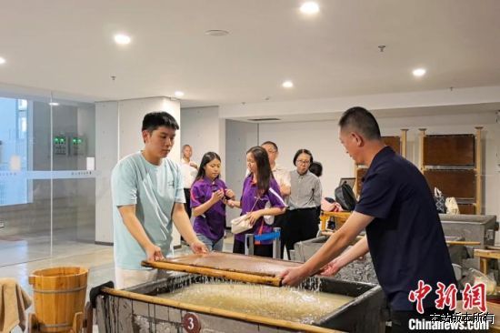 外国留学生在安徽中国宣纸厂造纸车间 【中新网】