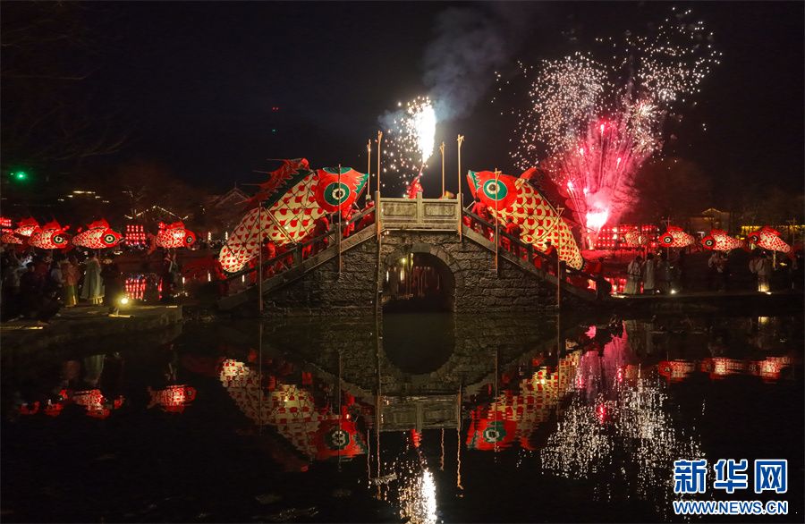 本网信息 当日,一场热闹非凡的鱼灯巡游活动在安徽省黄山市徽州区呈坎古村精彩上演。流光溢彩的徽州鱼灯穿梭于古桥古巷中,与白墙黛瓦相映成趣,吸引众多游客驻足观看,喜迎新年的到来。新华网发(施亚磊 摄)
