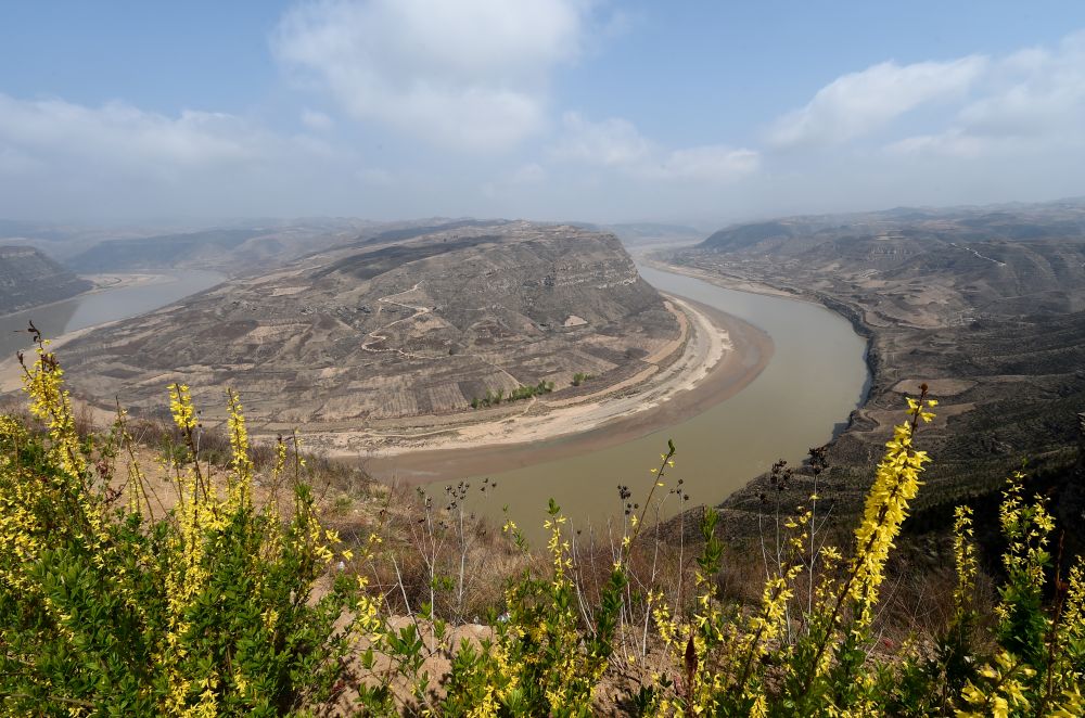 华徽网消息 黄河乾坤湾景区中的仙人湾(4月9日摄)。黄河在这里大幅度转弯,是黄河蛇曲的代表。黄河乾坤湾位于山西省永和县和陜西省延川县的晋陜峡谷中,自北而南形成7个大湾。站在黄河岸边俯瞰,景色宛然一幅山水和谐共生的图画,形成了中国河流中规模最大、最完好、最密集的蛇曲群,被誉为“黄河上最美的湾”。