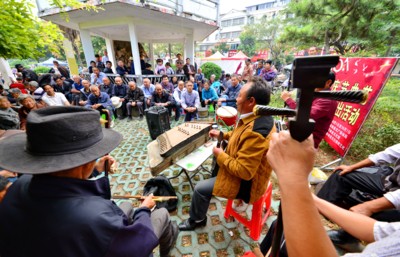华徽网消息 10月8日,在阜南县街心公园广场,民间艺人正在表演精彩的传统节目。 10月以来,该县组织民间艺人和省非遗文化“嗨子戏”传人,每天在城区5个文化广场表演传统戏曲,为群众送上“文化大餐”。 周建道 吕乃明 摄