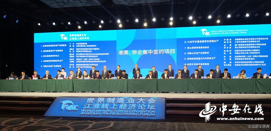 华徽网消息 9月12日,世界制造业大会江淮线上经济论坛“六百”项目集中签约仪式在合肥融创万达文华酒店举行。65个港澳企项目参与云签约,投资总额达509.72亿元。其中7个项目在主会场签约。与2019年相比,今年“百家港澳企”项目数量和投资总额实现双增长,分别增长4.8%、 14.3%。