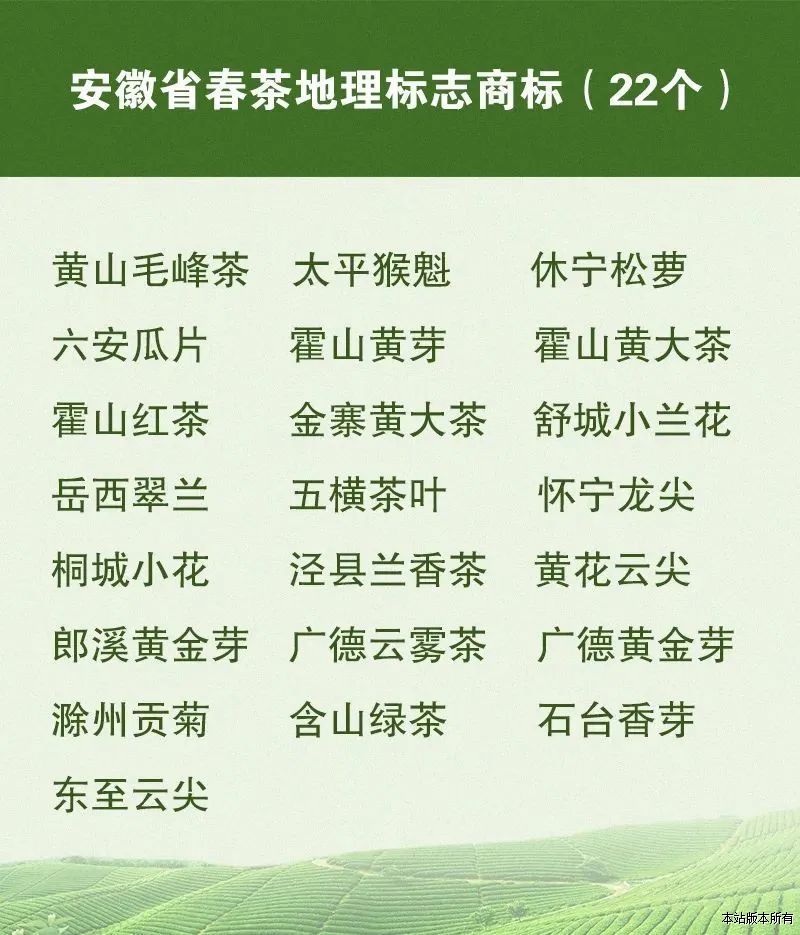 安徽省2021年:规范安徽春茶地理专用标志22个