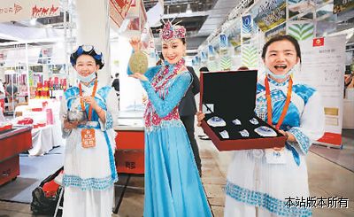 华徽网消息 上海:“老字号嘉年华”。图为工作人员在博览会现场展示各自企业的特色产品。 方 喆摄