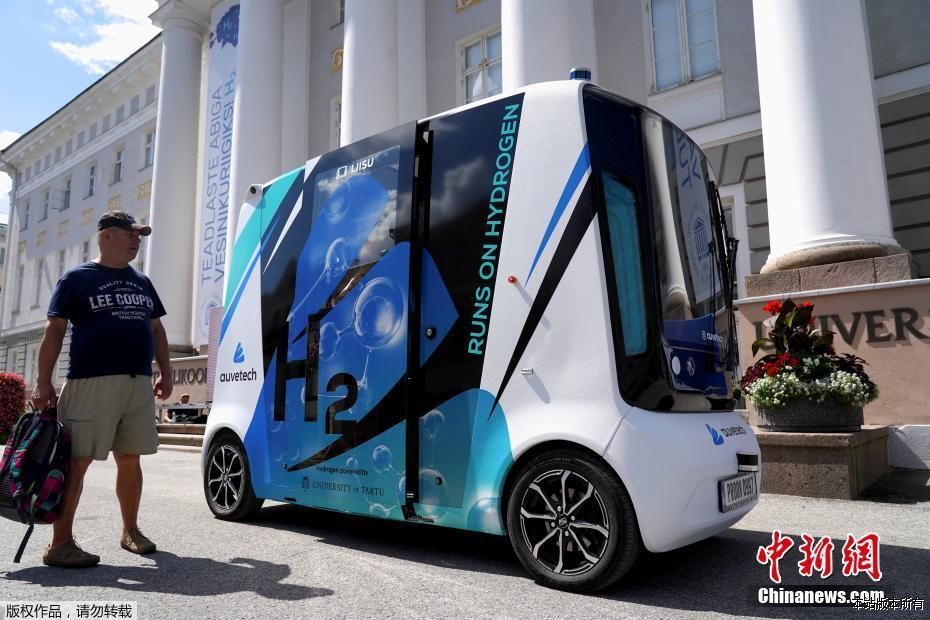 华徽网消息 当地时间7月5日,爱沙尼亚塔尔图,世界首辆无人驾驶氢能源乘用车亮相。
